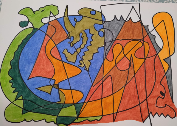 DESPRÉS ES TRACTA D’ANAR PINTANT DIFERENTS ESPAIS I FORATS DEL DIBUIX I DESCOBRIR QUE POT SORTIR.