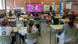 Amb els nois i noies de 6è va abordar el tema de les xarxes socials i l’alumnat va acabar inventant-se un rap.
