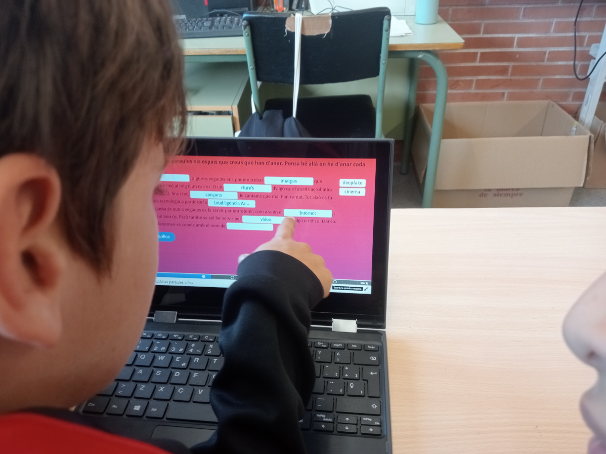 Amb l’alumnat de 5è la xerrada va girar entorn les notícies falses i el poder de la intel·ligència artificial per a poder crear imatges i vídeos que semblen molt reals, però que no han existit mai.