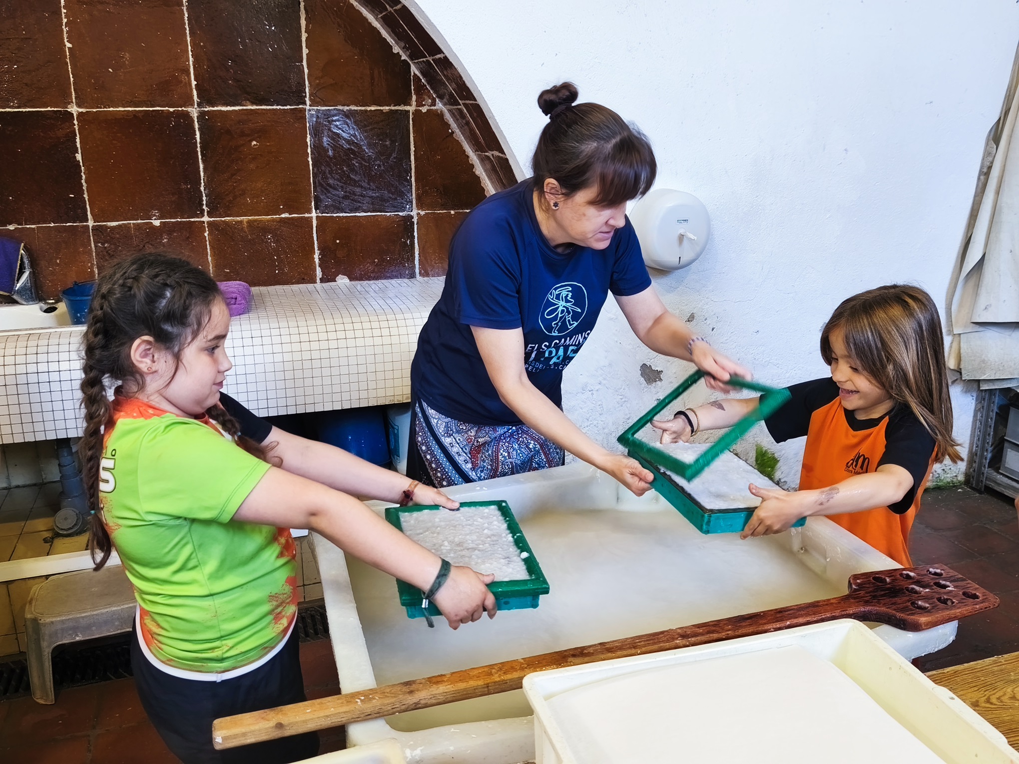 Avui l’alumnat de Mitjans 1 ha gaudit d’una jornada al Museu Molí Paperer de Capellades on han pogut observar, de primera mà, com es feia fa molts anys el paper. Aquesta és una de les sortides programades dins la SA relacionada amb el món de l’aigua. Per tant, hem comprovat un dels usos de l’aigua tot elaborant paper de manera artesanal.