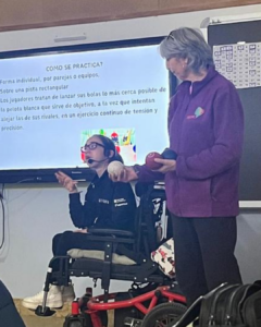 Fa unes setmanes, vaig anar a un col·legi de Tremp a ensenyar com es juga a  Boccia, hi vaig anar per què hi havia una nena que volia practicar aquest esport.