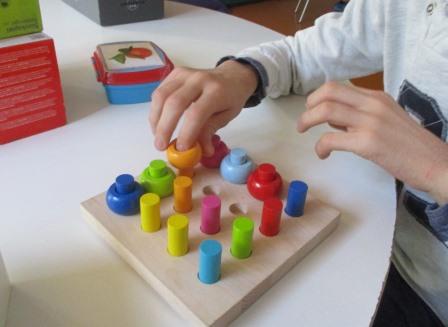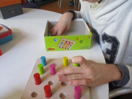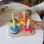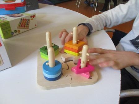 Amb els nostres alumnes intentem millorar pas a pas, des de l’agafar amb ajuda i deixar anar correctament els objectes,  a aprendre a insertar en una ranura sense seguir cap criteri, fins a encaixar segons criteri d’identificació de la forma, el color, la imatge…