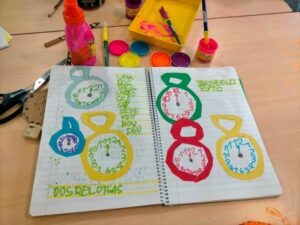 Aquests rellotges que hem fet entre tots també ens serviran per treballar amb la llum violeta a la sala dels somnis perquè estan pintats amb colors fosforescents. 🌈