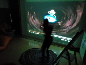 A la Sala dels somnis, també hem fet d’actors i hem interpretat allò que més ens agrada del conte que és la caiguda de l’Alícia al forat després de perseguir al conill blanc. Amb ajuda d’una bona ambientació ens hem llançat dins del cau i hem experimentat la sensació de caiguda durant el descens pel túnel negre.