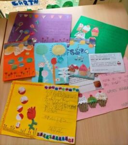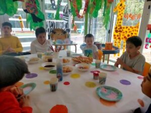 “Cada dia és una oportunitat per celebrar” i per això una activitat ben motivadora ha estat la recreació de la “festa del NO aniversari” on els personatges del conte celebren que no és l’aniversari de ningú. Nosaltres hem preparat una gran festa amb invitacions i amb una taula ben guarnida. Hem menjat pastissos i hem begut té amb les tasses i teteres que hem confeccionat retallant, enganxant i pintant molt pacientment. En aquesta activitat volem agrair la participació de les famílies que han col·laborat activament portant alguns dels productes que hem necessitat pel nostre banquet.