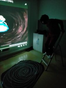 A la Sala dels somnis, també hem fet d’actors i hem interpretat allò que més ens agrada del conte que és la caiguda de l’Alícia al forat després de perseguir al conill blanc. Amb ajuda d’una bona ambientació ens hem llançat dins del cau i hem experimentat la sensació de caiguda durant el descens pel túnel negre.