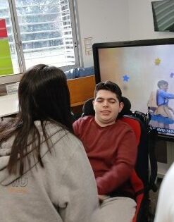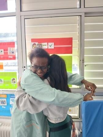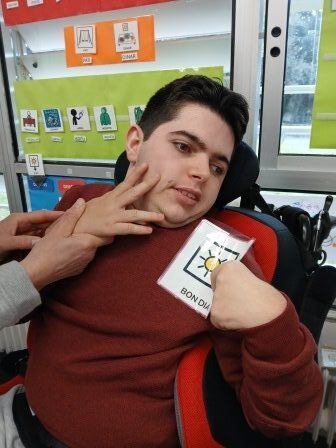 Cada dia un alumne de l’aula saluda de manera individual als seus companys/es, tot respectat el seu ritme i espera per tal que es dirigeixi al seu company/a buscant amb la mirada i apropant-se amb més o menys suport a saludar-lo xocant les seves mans.