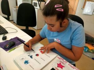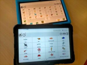 Amb el fil conductor del peix Irisat hem avançat en la comprensió de preguntes del tipus: Qui és? On és? Què fa?. L’ús de la tauleta, amb els pictogrames que ens va afegint la logopeda, ens ajuda a anar entenent aquestes qüestions de resposta oberta. Sempre ens resulta motivador obrir les nostres llibretes i carpetes i veure com hem anat treballant i aprenent sobre el tema!!