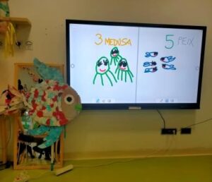 En l’àmbit matemàtic hem comptat peixos, meduses, etc. hem classificat animals marins, hem practicat els conceptes espacials, hem fet sumes, etc. Les matemàtiques són més divertides si tenen forma de peix.