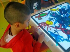 En l’apartat de noves tecnologies hem utilitzat la taula de llum, l’ordinador, el panell digital, les tauletes, la màgic carpet i la sala dels somnis per fer activitats variades.