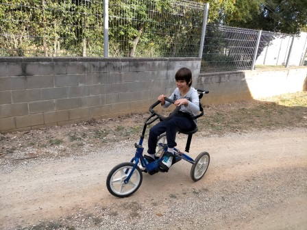 A l’escola Joan Riu fem moltes activitats físiques adaptades amb les que treballem diferents aspectes del desenvolupament motriu i personal dels alumnes. Per dur-ho a terme ens fem servir de diferents eïnes, en aquest cas el tricicle és una part important.