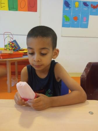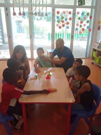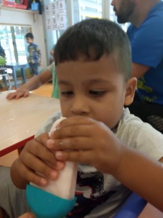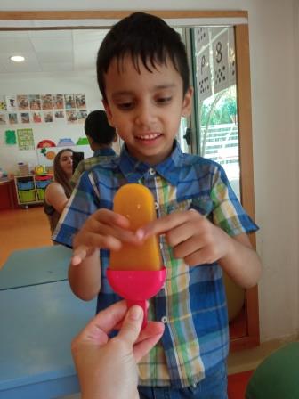 També, hem fet una activitat grupal d’experimentar a partir d’un gelat. Treballant així, les diferents textures, el tacte fred, observar que es converteix amb líquid etc.