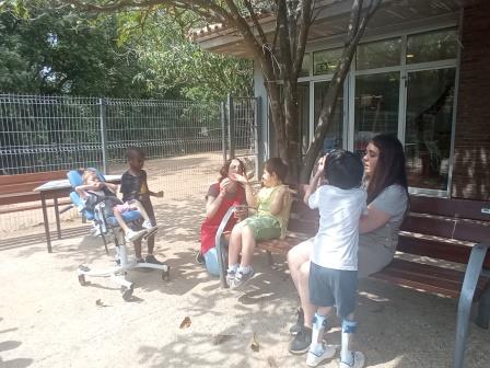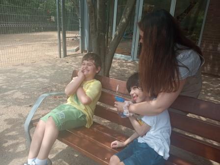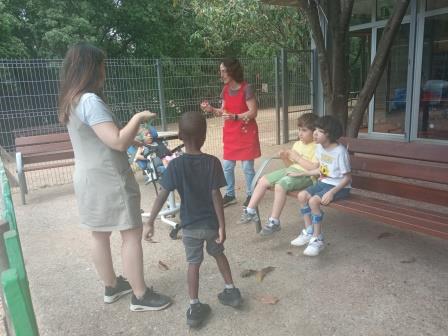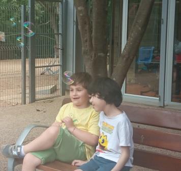 Hem aprofitat aquests dies de calor per remullar-nos entre tots, a més, és una bona manera de treballar el buf mitjançant les bombolles de sabó.