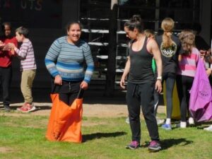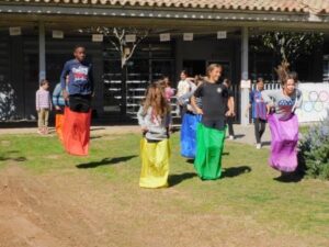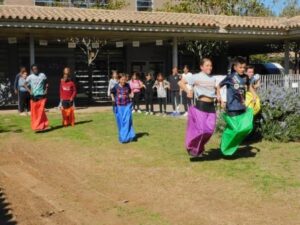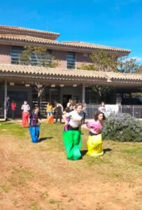 La cursa de sacs va ser molt divertida, tots animaven els participants.