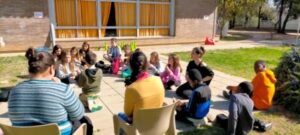 Després d’una visita a l’escola, en la que els vam ensenyar la nostra aula, tots junts vam esmorzar i vam aprofitar per conèixer-nos abans de començar l’activitat.