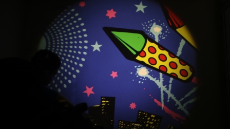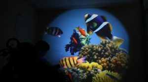 Projecta imatges que van canviant a la paret amb un disc giratori.