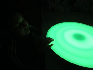 Una sensació que els agrada i capta molt l’atenció dels nostres nois/es és projectar la llum sobre ells mateixos. Alhora es potencien altres aspectes més motrius d’acostament , intencionalitat, joc …