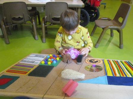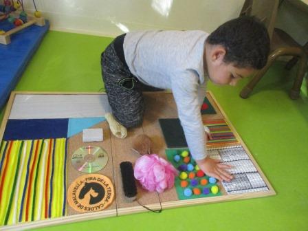 A l’aula 1 hem creat un Panell Sensorial estil Montessori amb diversos materials i objectes de diferents textures, formes i colors, amb l’objectiu que els alumnes experimentin diferents sensacions tàctils. Els panells sensorials estimulen la psicomotricitat gruixuda i fina.