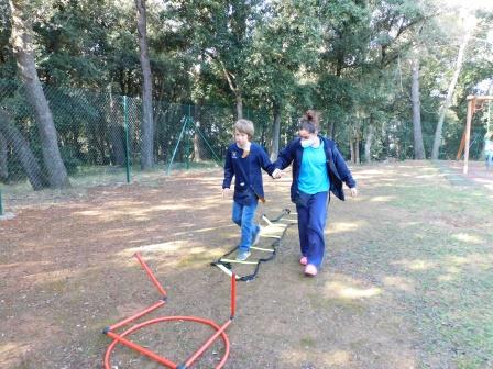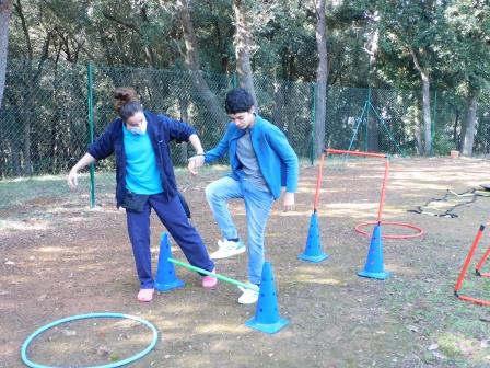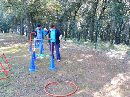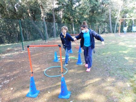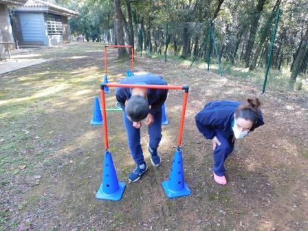 A l’Educació Física es treballen diferents destreses i habilitats motrius (circuits, precisió motriu, etc…) i alhora normes bàsiques de convivència individuals i en grup (col·laborar en l’activitat, seguir les instruccions, esperar el torn, interaccionar, etc.)