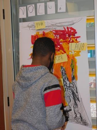 La primera notícia que hem treballat ha estat la del Volcà de la Palma, i a partir d’aquí hem descobert què és un volcà, què passa quan entra en erupció, què surt de dins el cràtrer, com es diuen les diferents parts.