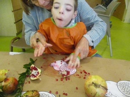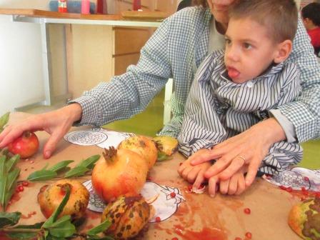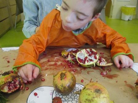 - Estimular de manera táctil tocant amb les mans les magranes i les seves llavors