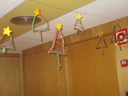 Les activitats de plàstica ens ocupen la major part del temps, hem fet arbres de Nadal amb branques que hem anat a buscar al bosc, aquesta manualitat ens ha anat molt bé per treballar la coordinació entre la mà dominat i la auxiliar.