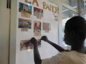 4· Posar el paper tallat dins la nostra capsa de ” Recicla paper “