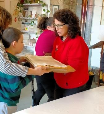 · El dia de l’excursió posem el paper escorregut en una bossa i ens n’anem cap a Banyoles. Arribem al molí i veiem que és un edifici molt gran i bonic. Ens va rebre la Mamen i ens va gravar un vídeo de benvinguda tots dient “papeeeeeer”, així ja només ens faltava esmorzar en un moment i ja estàvem apunt per fer el taller.