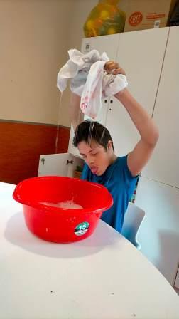 En el taller de bugaderia, treballarem el rentat a mà d’algunes peces de roba pròpia o d’altres alumnes i/o professionals de l’escola. A més, estendrem la roba que haguem rentat i un cop seca, la plegarem i ordenarem.