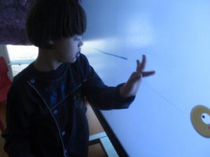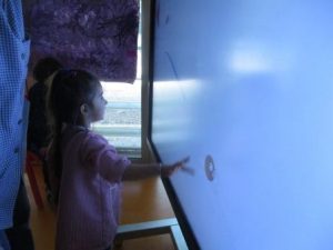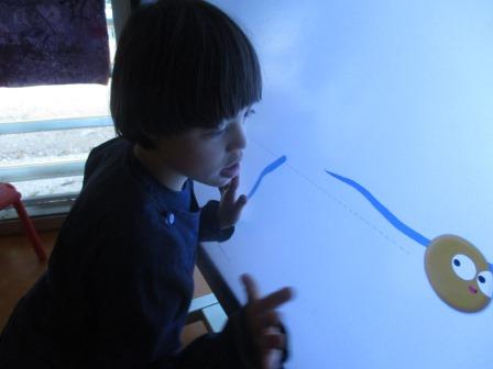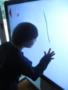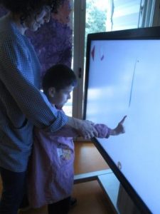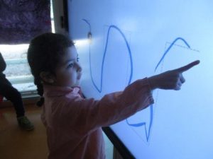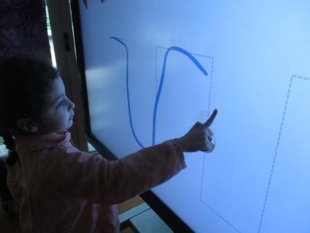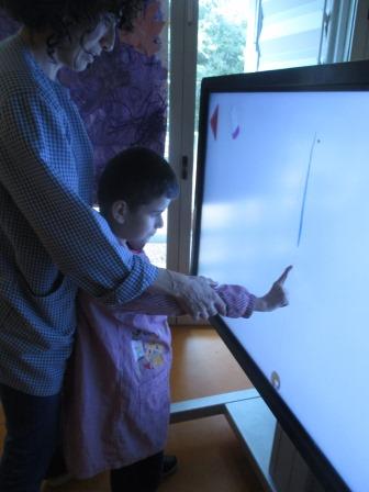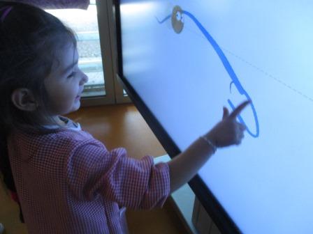 A l’aula un cop per setmana treballem el grafisme amb la clevertouch .