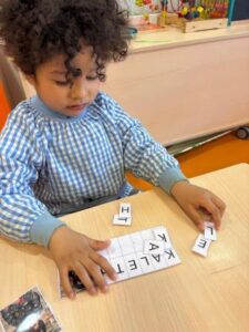 A més, es duen a terme habilitats molt diverses que ajuden a la vegada a treballar de manera competencial i transversal en molts aspectes claus pel desenvolupament integral del nostre alumnat, com ara l’associació de paraules i lletres enganxant amb precisió, i finalment, l’inici a l’escriptura.