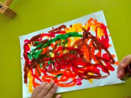 • També hem pintat amb ceres per treballar els colors de la tardor: groc, taronja, vermell, verd i marró.