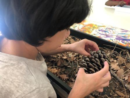 Hem experimentat amb elements de la tardor, hem aprofitat quan hem anat de passeig per fora de l’escola per agafar fulles, branquetes, pinyes, aglans,.. per després a l’aula omplir les safates sensorials i d’experimentació i de manera lliure tocar i manipular el que hem recollit de la natura i també per omplir de fulles l’arbre dibuixat a l’aula.