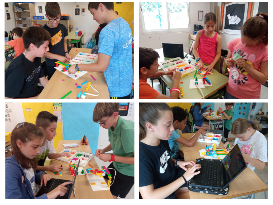 L’alumnat de cinquè ha estat treballant aquestes darreres setmanes en la programació de robots construïts amb peces de Lego. Aquest treball és el fruit de moltes altres activitats que s’han anat realitzant durant tota la primària amb llenguatge de programació. La proposta d’aula va ser crear un robot lliure que utilitzés un motor de gir i el sensor de color o el panell led de colors. Els resultats van ser extraordinaris i com que la majoria dels grups varen construir atraccions de fira vàrem decidir fer una presentació per a tots els nens i nenes de l’escola. Els diferents cursos varen passar per la biblioteca per veure com funcionaven les atraccions i l’alumnat de cinquè els explicava com les havien fet i fins i tot els deixava canviar aspectes de la programació dels robots o els deixaven iniciar el programa. Hi havia un vaixell amb diferents opcions de moviment, els coneguts Jamaica i l’Olla, unes plataformes giratòries i un restaurant on les mandonguilles van al plat seguint un recorregut sempre que paguis amb el bitllet correcte ja que tenen un detector de bitllets falsos. Ahir va ser un moment per compartir experiències molt bonic. Aquí us deixem imatges de l’exposició tot esperant que us agradin.