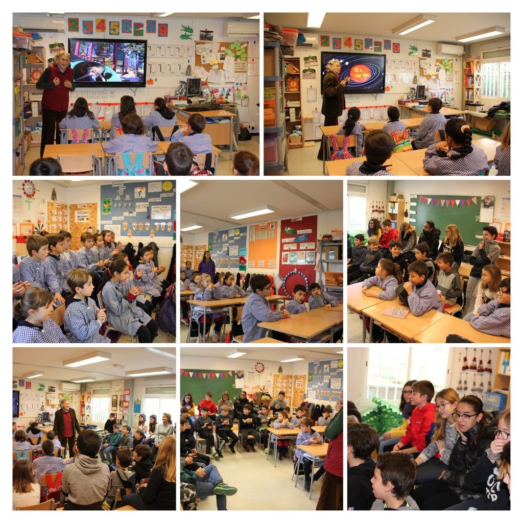 Aquest matí tot l’alumnat de Primària ha tingut la sort de rebre la visita de la Maria Crehuet. Ex alcaldessa d’Ordis, impulsora de les fonts d’energia renovables, articulista del Setmanari Empordà i molts anys presidenta de l’Associació “Micropobles” de Catalunya.