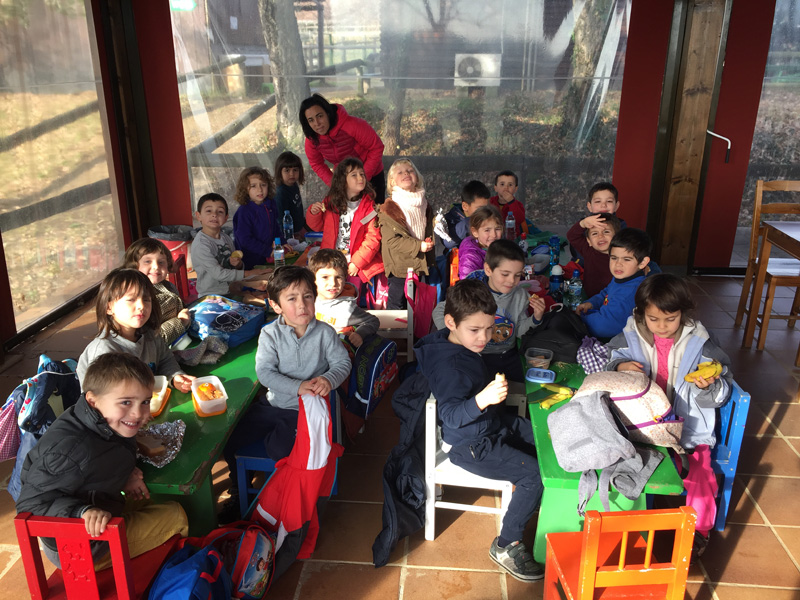 Les nenes i els nens de la classe del vent zèfir hem anat a Can Bosc a veure els animals de granja.
