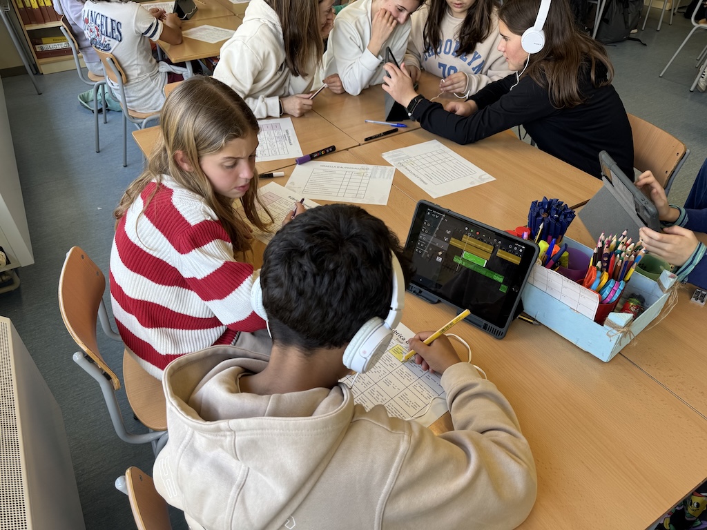 El projecte es va iniciar amb una activitat d’escolta i reflexió: l’alumnat va compartir una cançó significativa per a ell o ella i va analitzar com hi havia arribat. Aquesta primera fase va permetre treballar el pensament crític, posant sobre la taula qüestions com la influència de les xarxes socials, les recomanacions dels amics o el paper de la indústria musical en els nostres gustos.