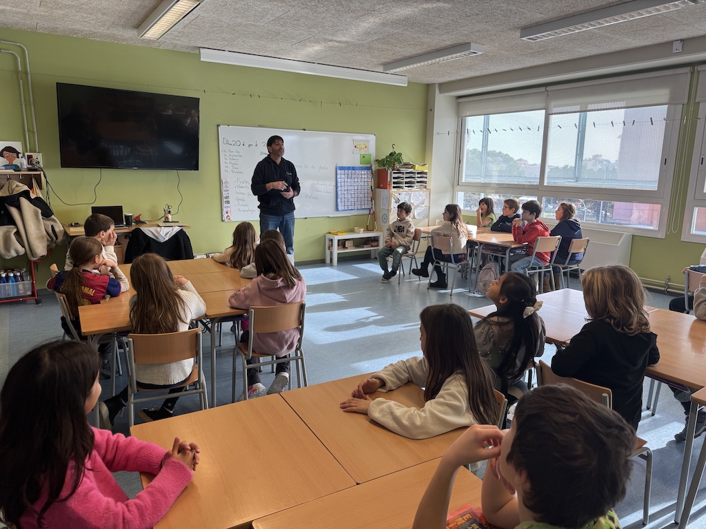 Com a l’aula de tercer estem fent descobertes sobre com es produeix el so de molts instruments, va venir a la sessió de música per parlar-nos d’aquest instrument que està aprenent a tocar.