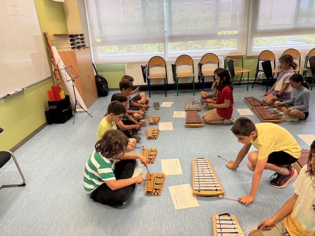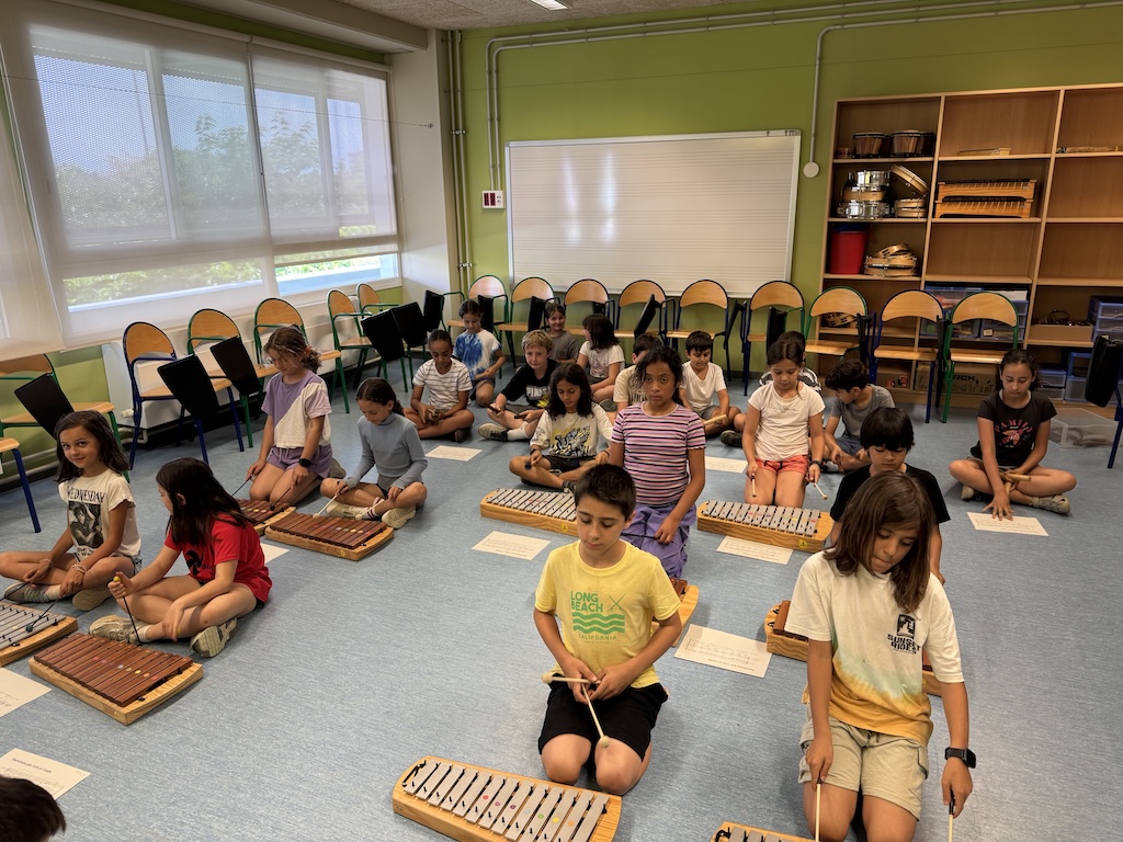 A les sessions de música amb la classe Vitralls de colors estem escoltant audicions de conjunts instrumentals diferents i hem provat de fer el nostre propi trio musical amb carillons, metal·lòfons i xilòfons i claves.
