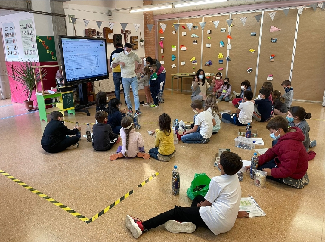Els infants representants de cada classe han vingut molt carregats amb ampolles i bosses de piles, la graella de la quantitat d’infants que ha menjat fruita els dimarts i dijous del mes d’octubre i algunes classes han portat la bola de paper d’alumini.