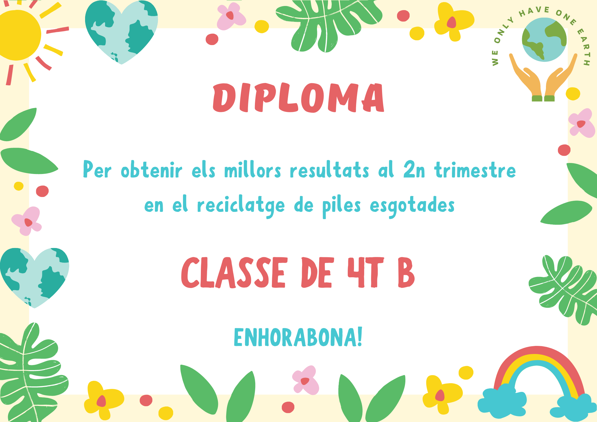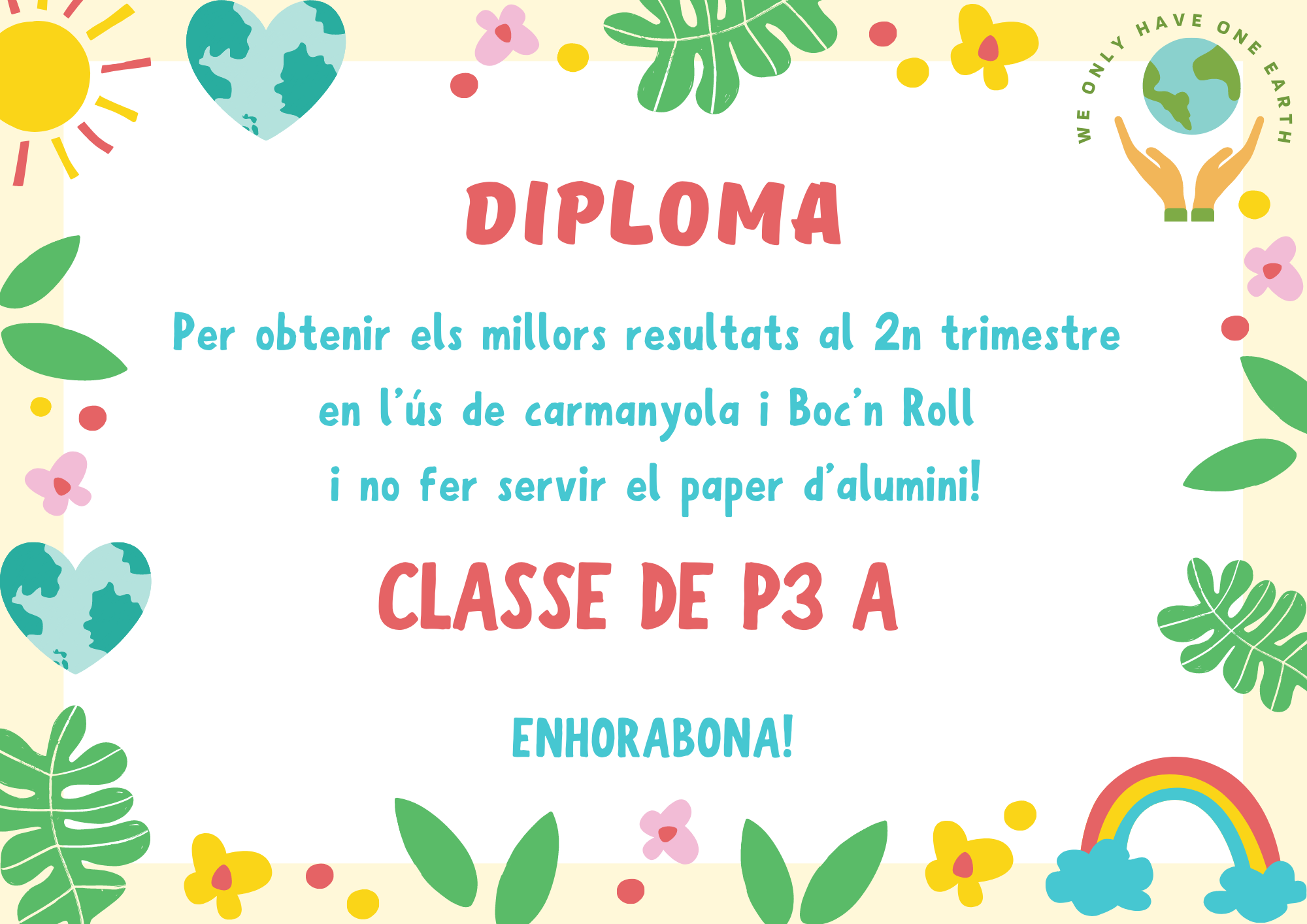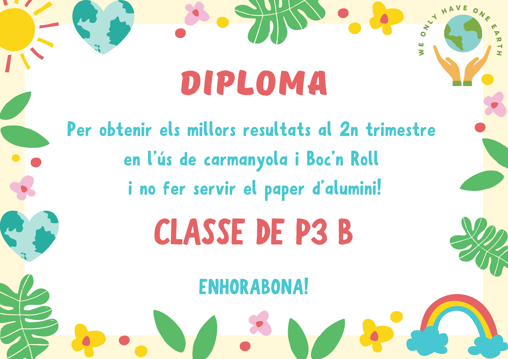 Al finalitzar aquest 2n trimestre, hem repartit els diplomes a les classes més sostenibles: