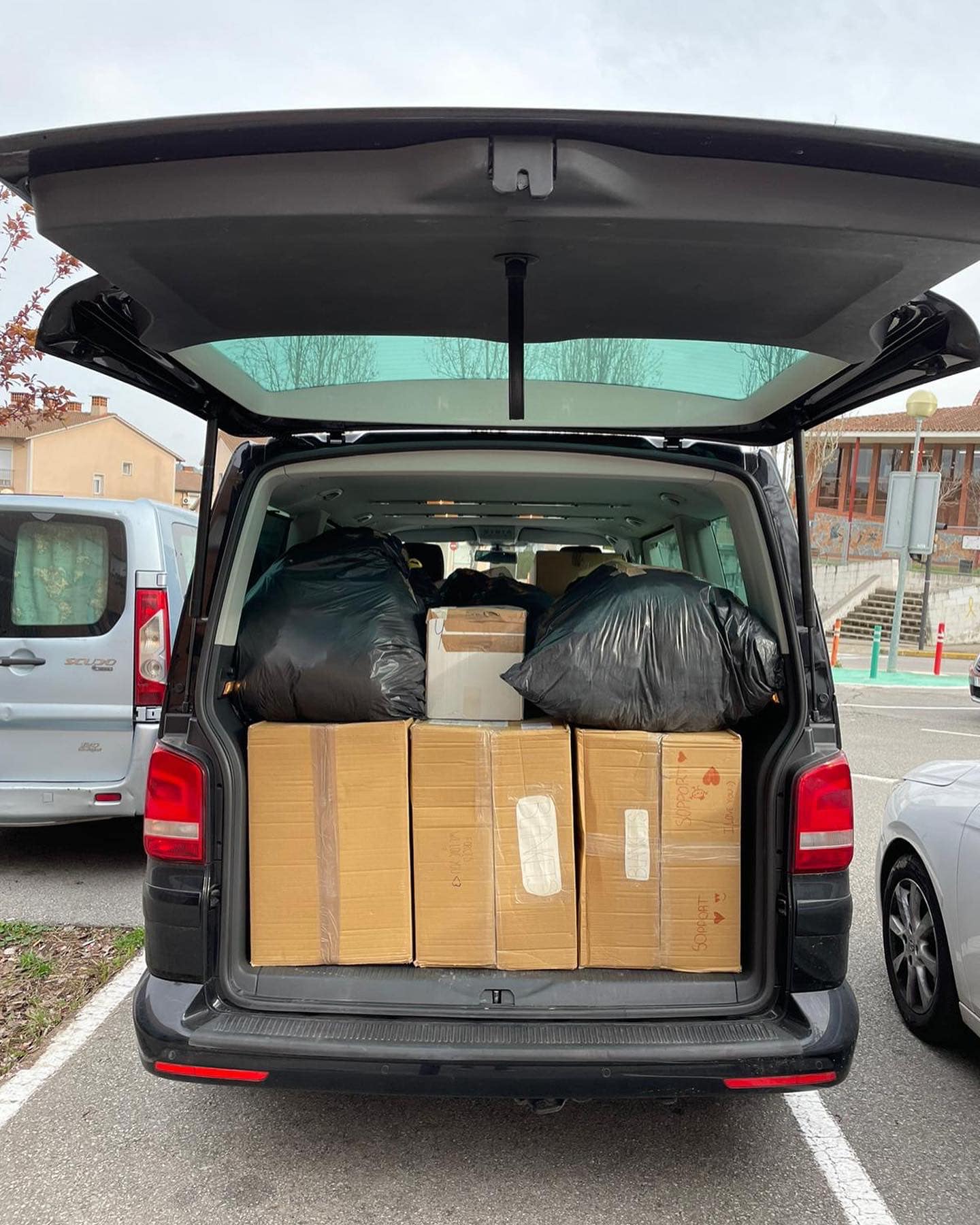 Amb tot el material que ens heu anat portant, hem omplert dues furgonetes que ja estan a la frontera d’Ucraïna amb Polònia. La resta de material que ens heu anat portant, l’hem entregada a una associació que també ajudarà als i les més necessitats/des.