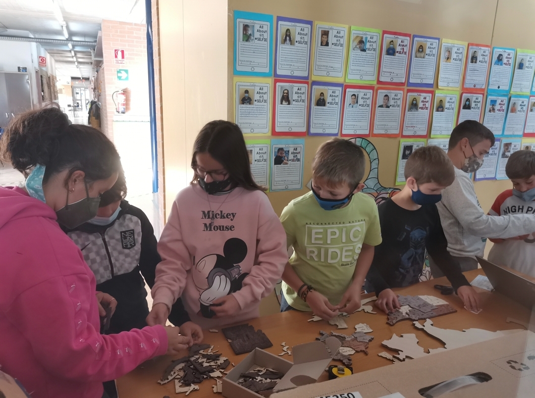 El vàrem distribuir a la taula i vàrem visualitzar diversos vídeos i mapes que ens guien en la col·locació i distribució de les peces.