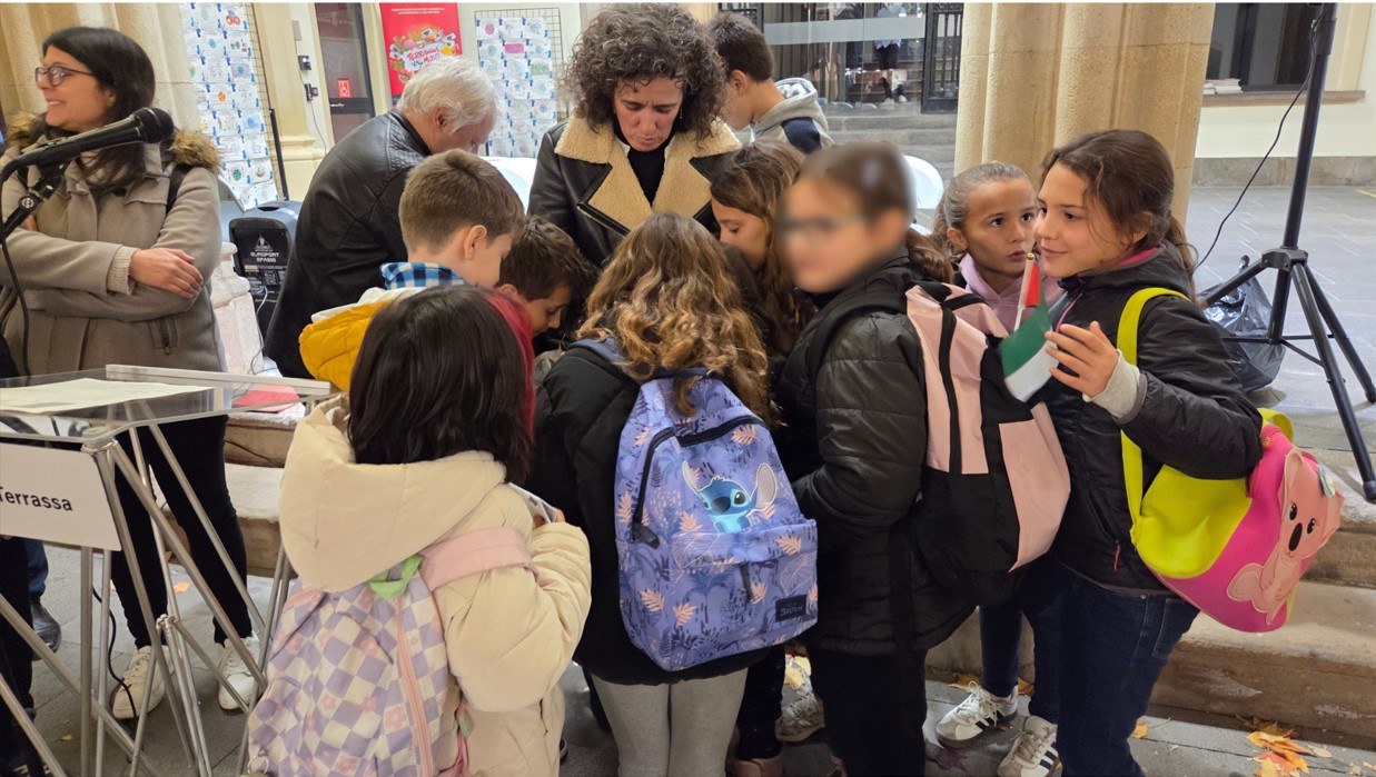 Posteriorment, una representació de nenes i nens de 3r va assistir, el dimecres 10 de desembre, a l’acte de commemoració del Dia Mundial dels Drets Humans, celebrat a l’Ajuntament de Terrassa. Durant l’acte, es van exposar els treballs fets amb l’objectiu de donar protagonisme als infants, posant en valor el seu paper com a coneixedors i defensors actius dels seus drets.