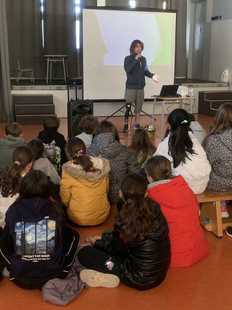 Dins les propostes que es van compartir aquell dia hi va haver de ben diverses. L’alumnat d’I4 va compartir espais de joc amb alumnat de l’EMEE Fàtima. L’alumnat de cicle superior va rebre la visita de l’Arnau Tricas, exalumne de l’escola Enxaneta, què va compartir-los la seva experiència de vida amb la pròtesi que dur i va donar peu a què l’alumnat preguntés tot allò que volien saber.
