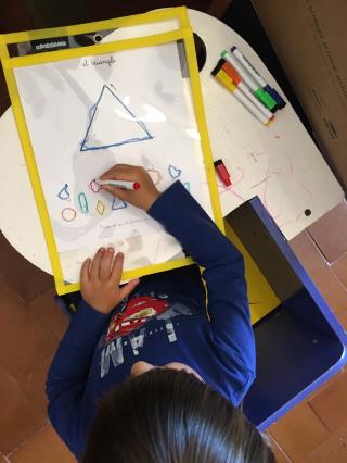 Here we are, with Coco, playing to introduce ourselves, to look for colours in different places in the class, to perform actions …