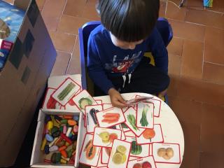 Our puppets went out to the playground to introduce themselves and we invented their name, then we went to the class to sing an acting song.