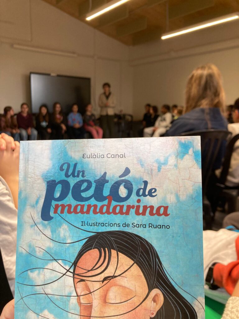 Avui a l’escola hem rebut una visita molt especial, l’autora del llibre Un petó de Mandarina, l’Eulàlia Canal. Els nens i nenes de cinquè han pogut escoltar les seves explicacions i reflexions, fer-li preguntes i conversar sobre el llibre i els personatges, com també sobre altres aspectes relacionats amb la literatura juvenil i l’escriptora. Tot