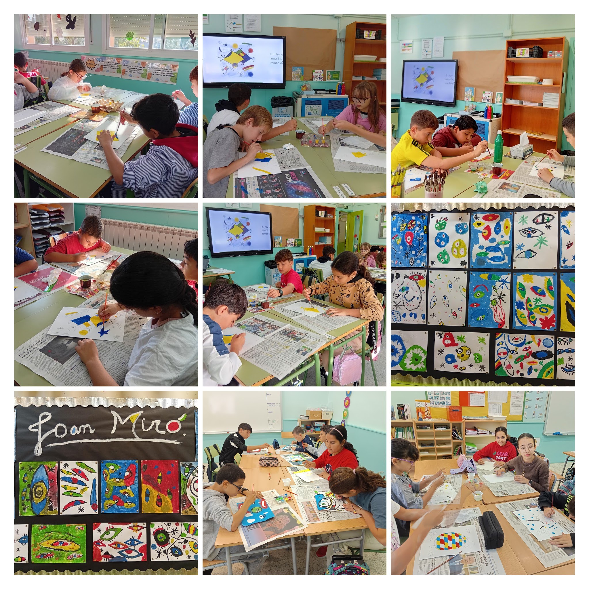 Aquest trimestre, els alumnes de Cicle Superior han treballat l’obra de Joan Miró a les sessions de plàstica. Ens hem inspirat en les seves formes geomètriques, en el seu vocabulari artístic ple de símbols i en la seva manera tan lliure d’entendre el color. Hem explorat especialment el blau, el vermell, el groc, el verd i el negre, colors que Miró utilitzava per donar vida a mons imaginaris.