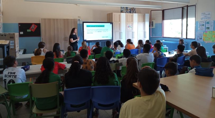 La Lorena va dinamitzar l’activitat mostrant un vídeo amb testimonis de persones gitanes que han seguit estudiant i que avui treballen en professions diverses: des de màrqueting fins a personal sanitari 👩🏫👨⚕️. Aquests exemples reals van motivar molt l’alumnat, demostrant que amb esforç i perseverança, tothom pot arribar on es proposi 💪🌟.